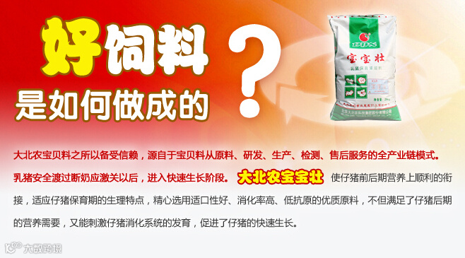 5.在从教槽料过渡到宝宝壮时,应有3-5天的过渡期;在从宝宝壮过渡到仔猪料时,应给予5-7天以上的换料过渡期,以减少仔猪应激、促进生长。
