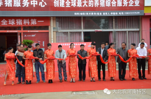 最后滑县畜牧局领导及大北农集团河南特区领导为大北农滑县养猪服务中心开业剪彩,礼花满天,鞭炮齐鸣,锣鼓喧天,庆典仪式达到了最高潮。