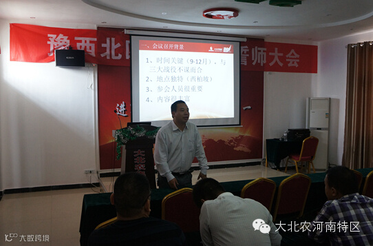 2014年9月29日,预混料豫西事业部“决战100天 打赢大战役”干部会议在大北农河南特区总部会议室隆重召开。预混料豫西事业部全体将帅齐聚一堂共商“冲刺四季度、奋勇争第一”的目标。河南特区副总经理王杰老师出席此次会议。