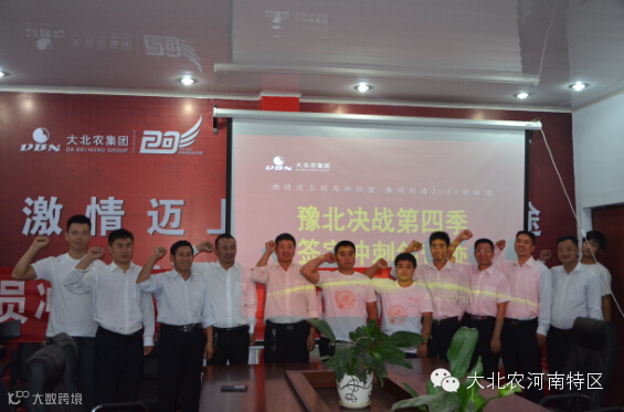 10月3日,预混料豫北事业部总经理杨亚松老师就召集全体干部及优秀员工代表于10月3日夜晚在大北农汤阴养猪服务中心隆重召开了预豫北事业冲刺四季度签字仪式。