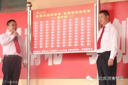 王杰老师与徐明华老师共同为“全员决战100天 全面创造新奇迹”倒计时揭牌。倒计时牌时刻提醒着河南特区的战将们时不我待,唯争朝夕。实现全球猪料第一、建成中原集团的目标需要大北农战将把握分秒、全力投入、永争上游。