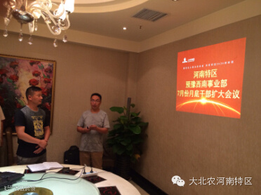 预豫西南事业部杨爱科老师为大家传达了河南特区总经办会议精神,杨老师指出当前形势刻不容缓,8月份是“夏季风暴”胜利收官阶段,大家一定要按照既定目标,找准方法,战酷暑斗高温,发挥大北农人奋勇拼搏的精神,给河南特区交一个满意的答卷。