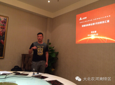 财务部屈亚雷老师做了7月份财务汇报和绩效分析,屈老师从6、7月份销量对比,各分公司利润,人均毛利等方面做了详细阐述,同时为大家讲解农富宝的推广使用。