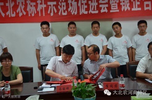 2014年5月28日,大北农汤阴养猪服务中心标杆示范场促进会暨银企合作签字仪式圆满召开。大北农汤阴养猪服务中心总经理马国帅老师、汤阴村镇银行行长崔同君同志、预豫北事业部总经理杨亚松老师、大北农金牌讲师李长城老师、汤阴公司各职能部门负责人及全体业务老师和标杆示范场合作伙伴等60余人参加了本次大会。