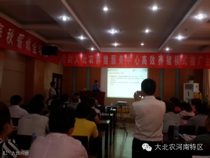 这次会议有禹州公司汪涛老师主持,刘若飞老师首先以《大北农爆炸式发展 打造登封养猪服务中心财富共同体建设》为主题的讲话引爆了全场养殖户的激情。