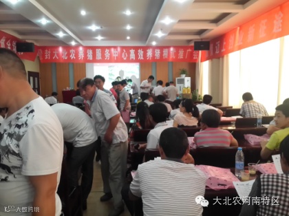 紧接着登封市邮政储蓄信贷部的《联手大北农 解养殖户资金之忧》让到场的养殖户喜笑颜开,简便的信贷手续、高效的放款速度、极低的贷款利率使现场的客户纷纷称赞登封大北农养猪服务中心给他们送去了及时雨。