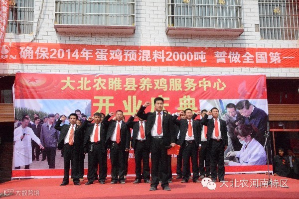大北农睢县养鸡服务中心盛大开业,将大力推动“六化建设”新的运营模式。预混料禽东公司全体员工在邢尧老师和王杰老师的引领下,在豫东事业部刘松老师、谢明明老师的带领下为睢县公司2014年蛋鸡预混料2000吨的目标全力以赴、再创辉煌,誓做全国第一!