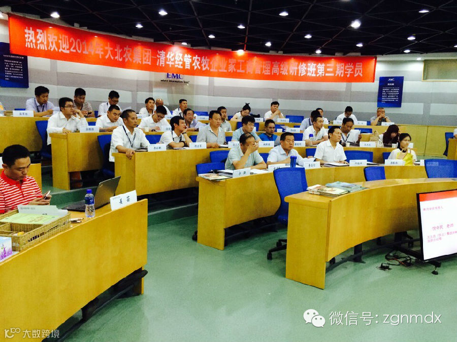 继第一期、第二期“大北农集团-清华经管农牧企业家工商管理高级研修班”成功举办之后,2014年7月22日,由大北农集团、中国农民大学和清华大学经济管理学院共同打造的第三期“大北农集团-清华经管农牧企业家工商管理高级研修班”在清华大学经济管理学院隆重举行,又一批来自全国各地的多位农牧企业家纷纷参加了培训活动。本次培训将进一步拓宽和更新大型养猪企业家的知识结构,树立现代经营管理理念,提升综合管理素质和专业知识水平。