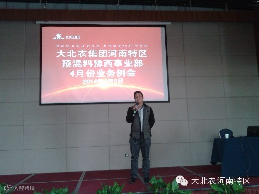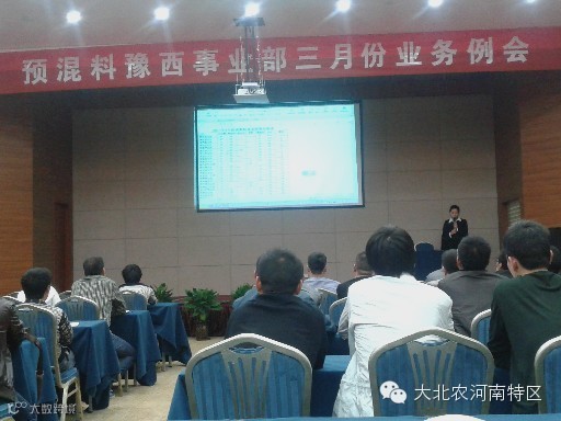 2014年4月2日至3日预混料豫西事业部三月份业务例会在新郑市喜度大酒店第三会议室隆重召开,预混料豫西事业部的业务将帅及支撑服务体系的老师们60多人参加了此次会议。