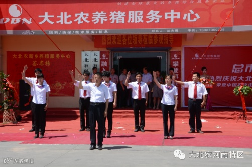 最后大北农集团河南特区领导及新乡市畜牧局与新乡科技学院的领导为大北农新乡养猪服务中心开业剪彩,礼花满天,鞭炮齐鸣,锣鼓喧天,庆典仪式达到了最高潮。