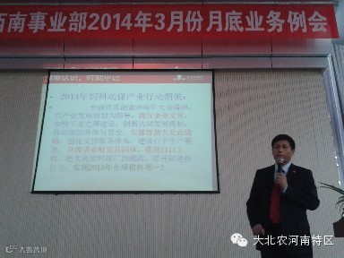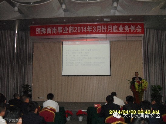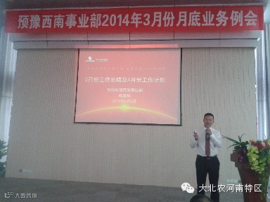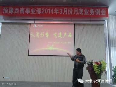 2014年4月2日,大北农集团河南特区预混料豫西南事业部3月份业务例会在南阳市唐河县唐河迎宾馆隆重召开。