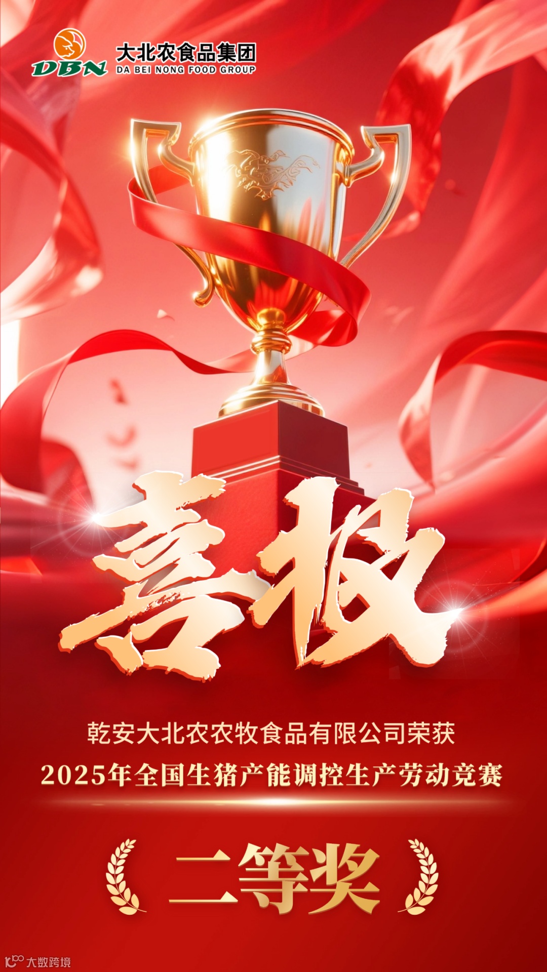 近日,农业农村部畜牧兽医局、中国农林水利气象工会联合发布通报,对在“全国生猪产能调控生产劳动竞赛”中表现优异的单位和个人予以表彰。乾安大北农农牧食品有限公司凭借在生猪产能科学调控、生产管理优化及团队协同攻坚方面的卓越表现,在“2025年全国生猪产能调控生产劳动竞赛”荣获二等奖!