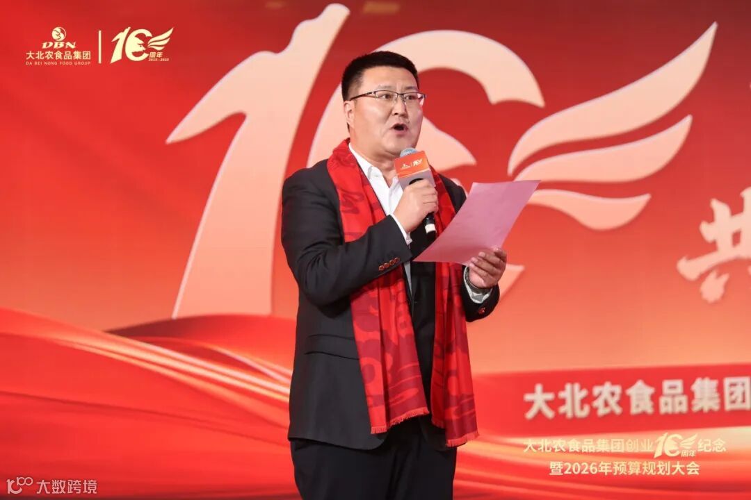 号角连营,铁骑再出征!在全体参会者炽热的目光中,下一个十年征程的冲锋号角震天响起!大北农食品集团常务副总裁杨学刚老师为新征程致启动辞,他讲到,回首十载征程,大家用三千多个日夜的冲锋陷阵,将平凡日常谱写成一部可歌可泣的创业战歌;站在新的起点,让我们牢记“强农报国”的初心使命,坚决完成2026年“商品肥猪全成本11.4元/公斤、生产饲料180万吨”的作战目标!