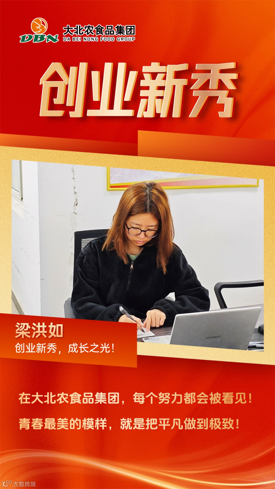 创业新秀,成长之光!怀揣对农业事业的赤诚之心,她在生产一线中精益求精、步履不停,以坚定的信念和扎实的行动,诠释大北农食品集团创业者“强农报国”的责任与担当!