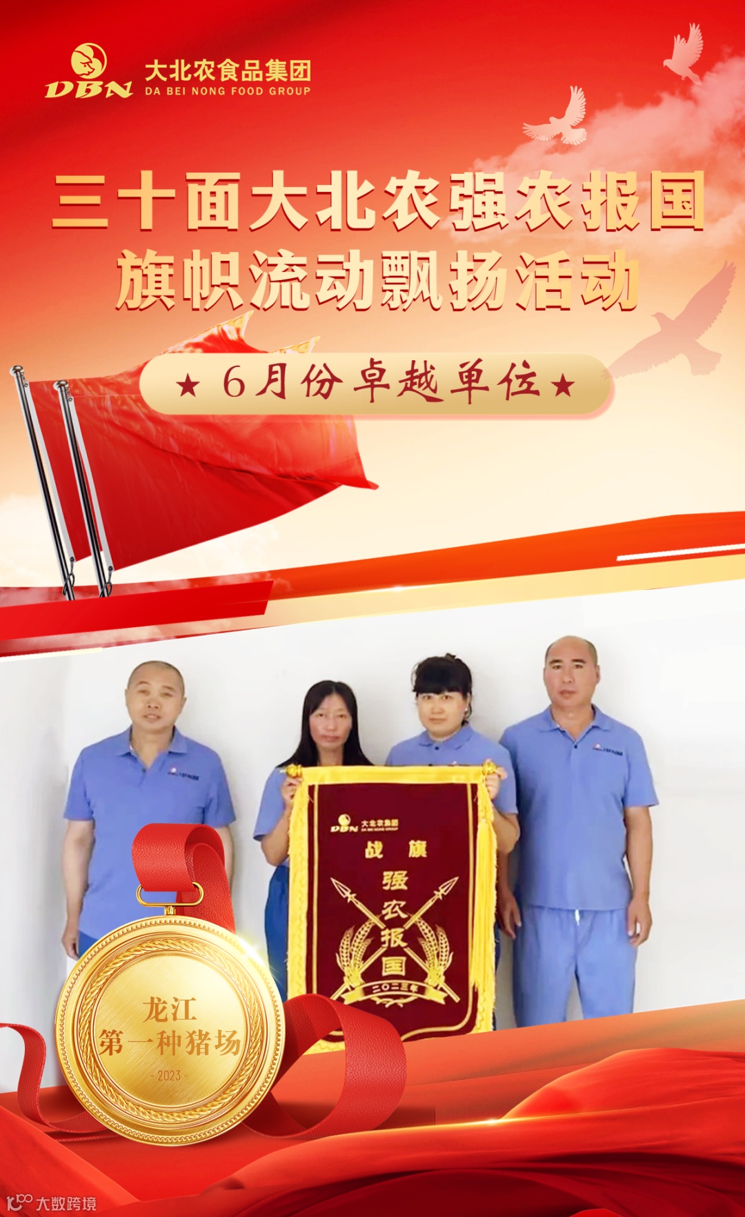 盛夏时节,喜报频传!近日,大北农食品集团龙江第一种猪场、乾安一场荣获大北农集团“三十面大北农强农报国旗帜流动飘扬活动6月卓越单位”荣誉称号!