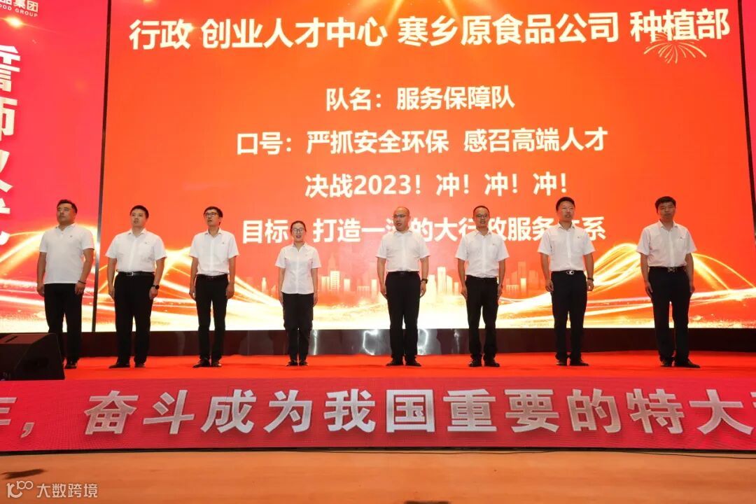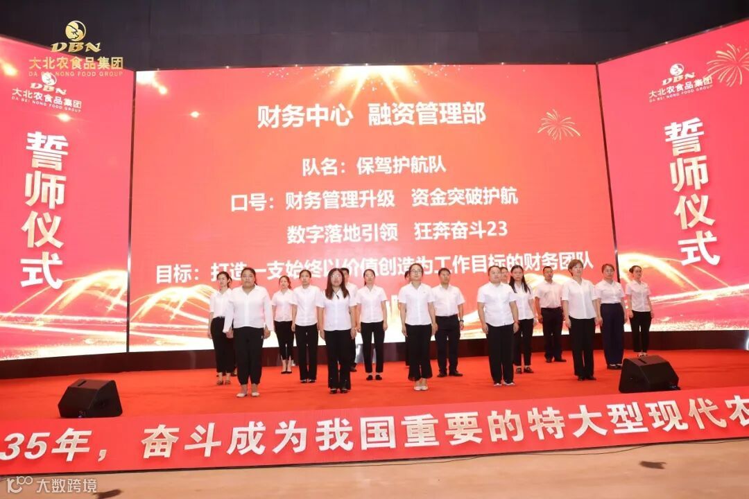 战旗猎猎,铁骨铮铮;将士出征,狂奔冲锋!伴随着激昂的音乐声,大北农食品集团“决战2023年下半年誓师仪式”环节隆重开启!来自各公司及部门的16支代表队伍依次上台,一声声口号势如破竹、一句句目标响彻云霄!创业者们心潮澎湃、壮志在胸、豪情满怀,誓在夺取事业崭新荣光!