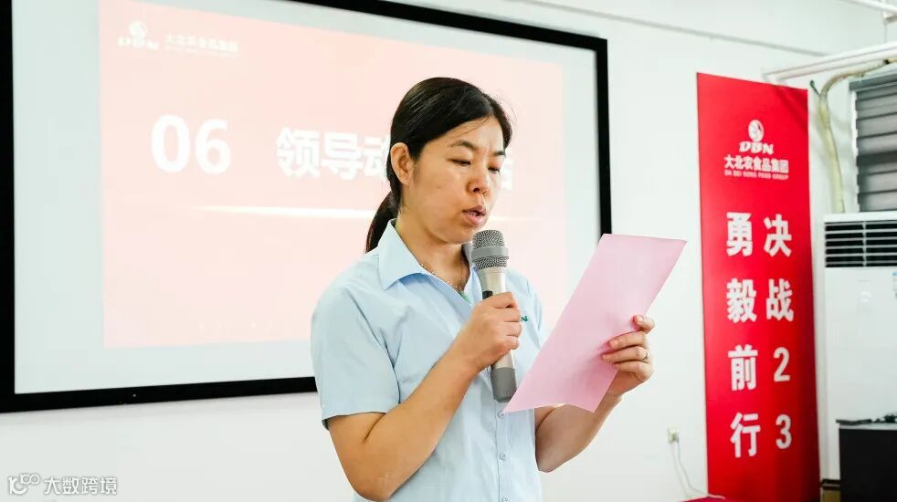 随后,大北农食品集团高级副总裁邹岩老师为活动致辞,她讲到,大北农从两个人、两万元、两间房开启创业征程,一路上大北农人开天辟地、劈波斩浪,在农业发展的大浪潮中步履铿锵、势不可挡!让我们在大北农事业创立30周年之际,跑出创业“加速度”,打开事业“新格局”,以更加顽强的战斗力融入到建设农业强国的大农业新时代的决战中,满腔热血、步履铿锵地向着2023年“实现年出栏220万头,产销饲料近100万吨”的目标全力冲锋!以优异战绩为大北农事业创立30周年献礼!