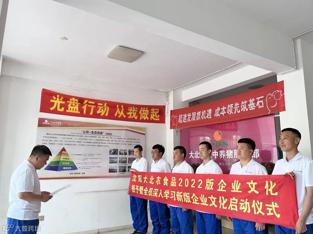 为进一步贯彻落实新版企业文化,全面营造“推狂奔,提效率”的浓厚创业氛围,提升团队战斗力,2022年5月11-12日,大北农食品集团联动各养猪公司、猪场、服务部、饲料厂共同举办了2022版企业文化授予暨全员深入学习新版企业文化启动仪式。