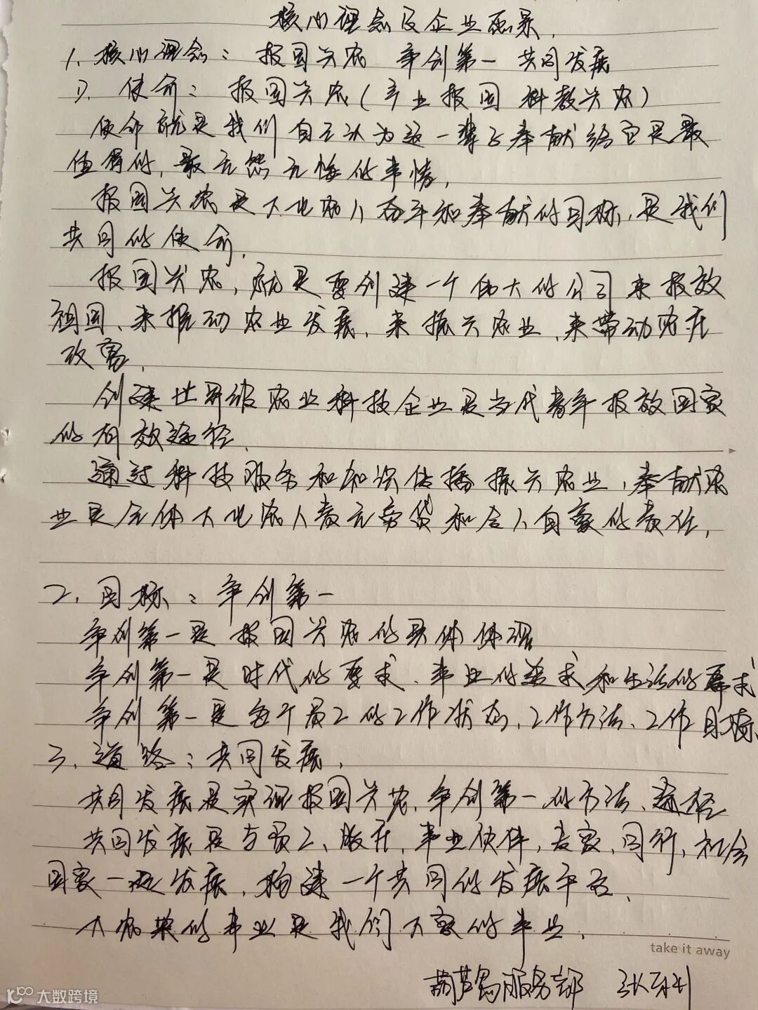 对于大北农人来说,文化是精神引领,也是发展动力,我们只有深深扎根于文化,才能为这份事业增加底气、灌注生气!创业者们一字一句写下的既是感染人心的企业文化,也是对于这份事业的虔诚与热爱!
