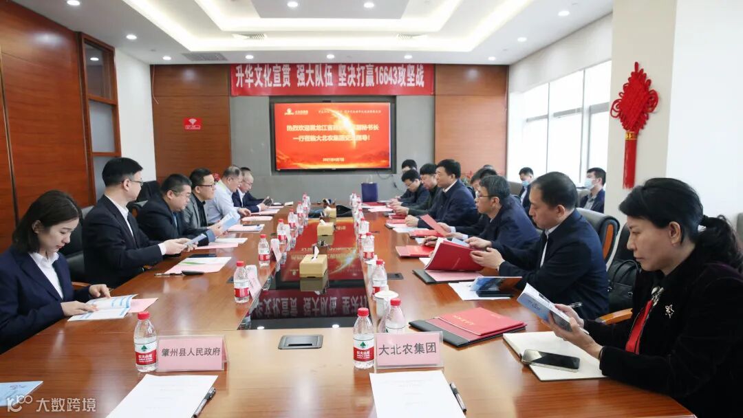 4月7日上午,黑龙江省政府副秘书长韩库、省农业农村厅副厅长虞塞明、肇州县政府县长李洪杰、黑龙江省农业农村厅畜牧处处长李亚立等一行莅临大北农集团参观交流。大北农集团总裁、大佑吉集团董事长、黑龙江大北农食品董事长张立忠,大北农集团常务副总裁王跃华,高级副总裁陈忠恒,高级副总裁莫宏建,黑龙江大北农食品副总裁杨学刚等相关负责人接待。韩库副秘书长一行首先参观了农信互联,随后就深化政企合作、实现共赢发展进行深入探讨,双方签署合作框架协议。