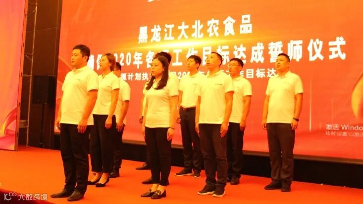 在大北农集团饲料产业吉林区总经理李晓成老师的致辞中,黑龙江大北农食品“确保2020年各项工作目标达成”誓师仪式正式开始。