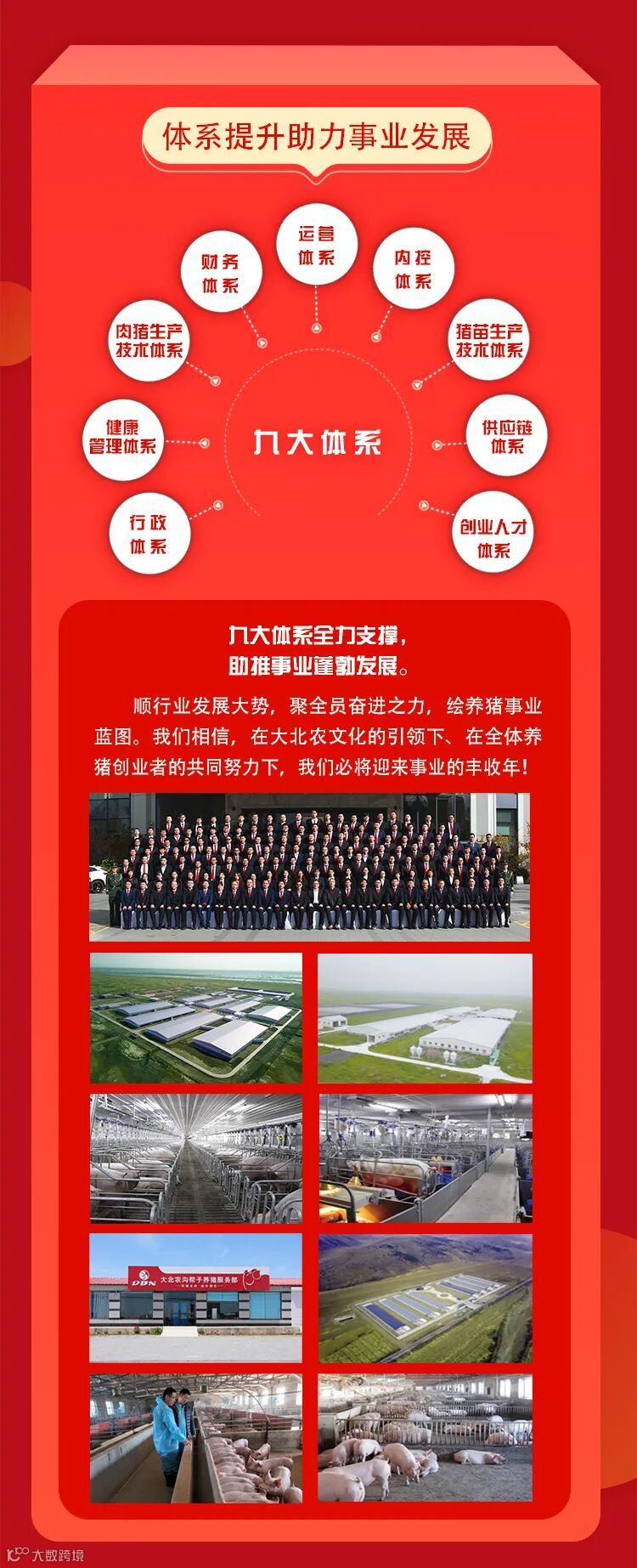 大北农食品集团立足黑龙江、面向大东北,以养猪为主业,同时开展饲料产业、畜牧业、粮食贸易、优质农副产品、粮食深加工、金融、投资等产业。集团立志到2035年,奋斗成为我国重要的特大型现代农业食品集团!