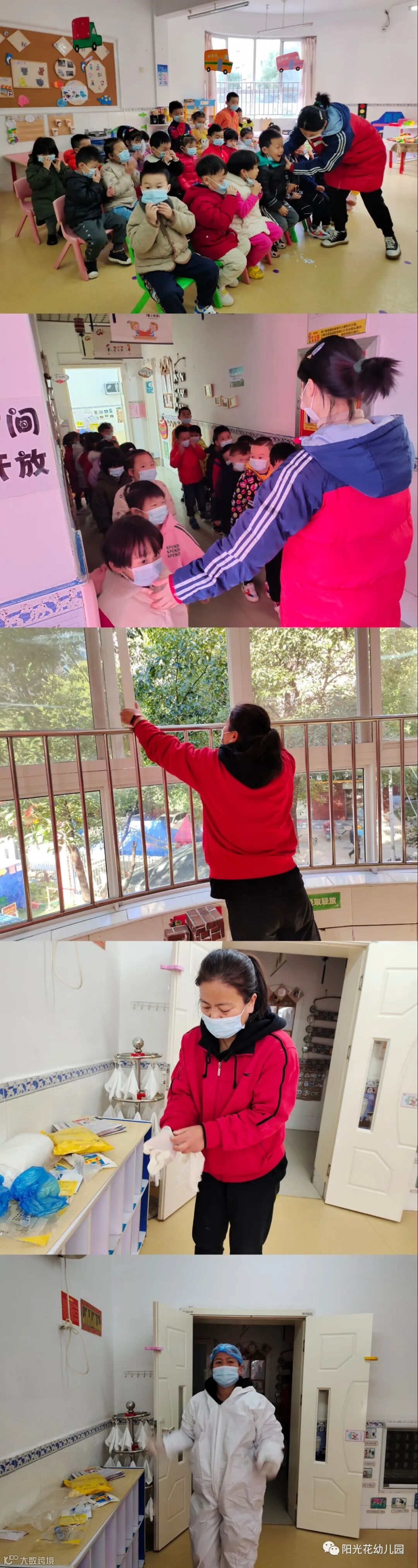 ●以上清理完后,用消毒水浸泡拖把30分钟后、把盆和拖把清洗消毒后拿至太阳底下暴晒,随后班级开臭氧机消毒一小时。