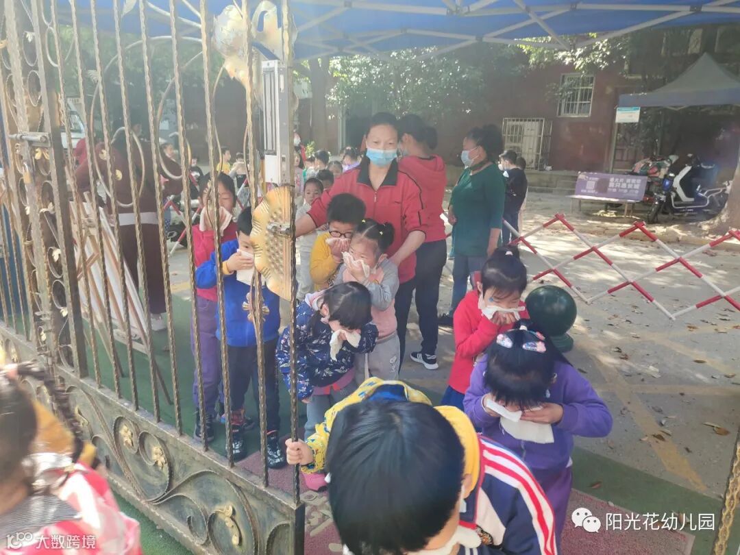 2022年4月7日下午3:00,随着警报声的响起,阳光花幼儿园消防逃生演练活动开始了。警报声响起,“火”速行动!听到指令后全园师生立即用湿毛巾捂着口鼻,下楼井然有序。孩子们集中疏散到操场安全地带,教师分工有序,及时清点幼儿人数,查看“伤况”,及时汇报总指挥。“时间就是生命!速度就是机缘!常识练就习惯!”