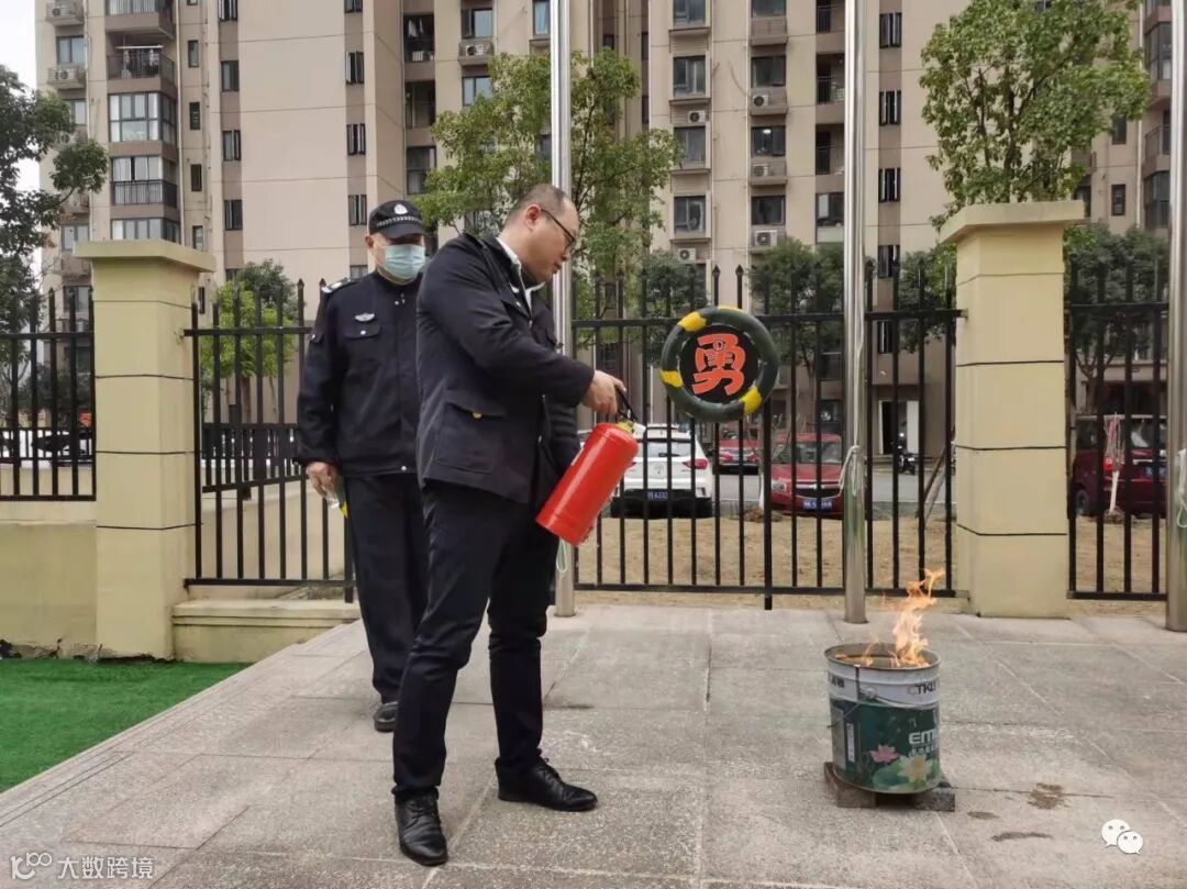 罗教官还为老师讲解干粉灭火器的使用步骤,让老师们在实践操作中掌握了灭火器的操作方法:提、拔、握、压。