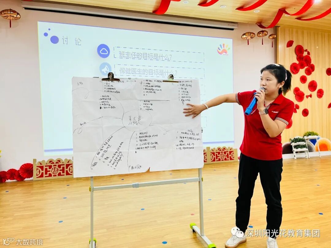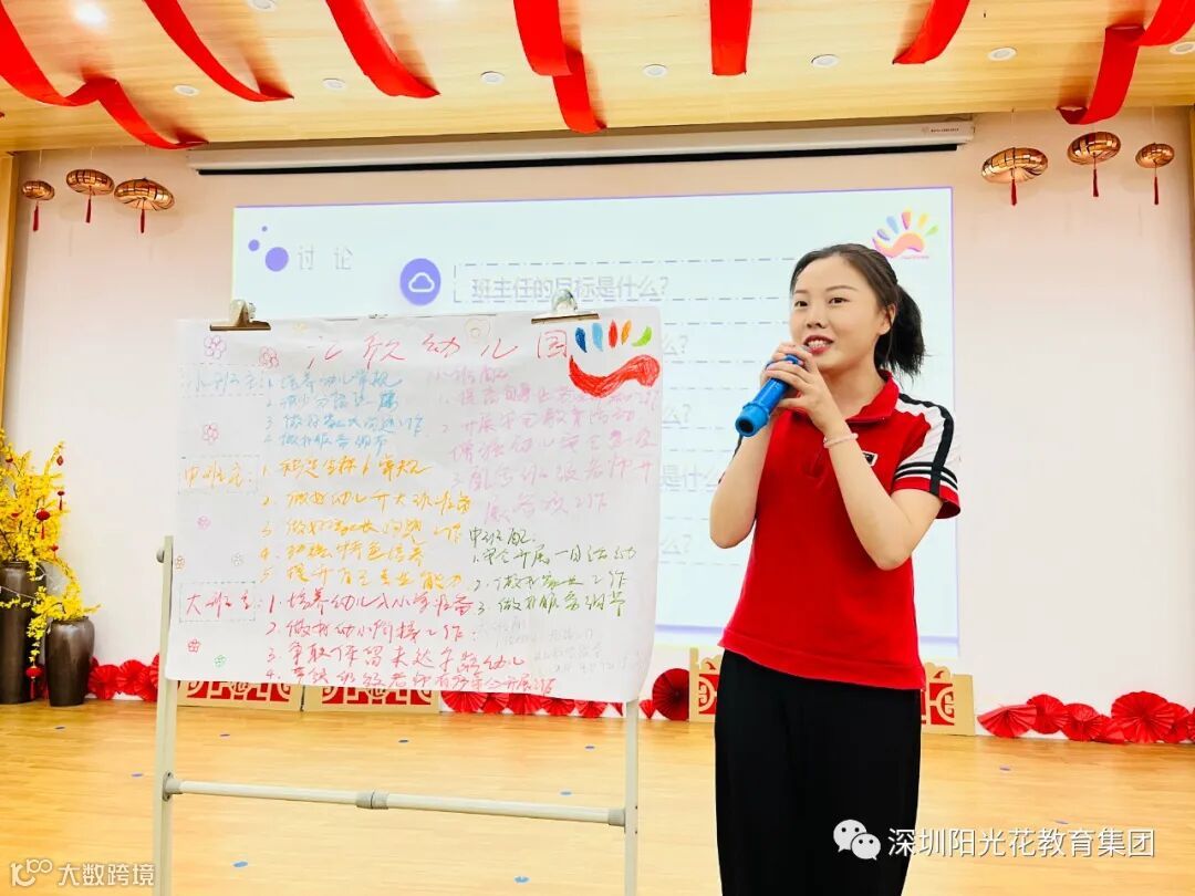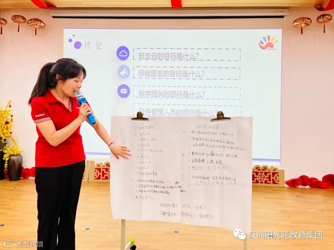 本次活动由深圳阳光花教育集团湖北分部张海燕总园长进行总结,我们可以普通,但不可以原地踏步,需要朝着方向努力,人要有目标,有追求,不断的学习提升自己,一张蓝图绘到底,一生担当拼到底,一心求实实到底,一路同行走到底。