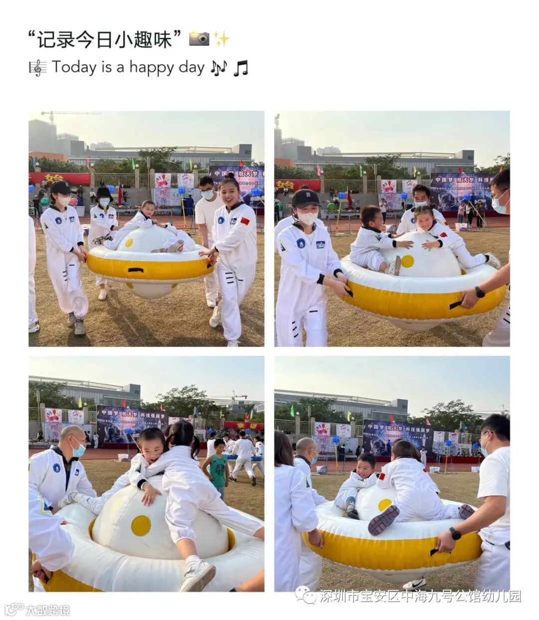 为了让孩子们离科学梦想更近一点,于2021年12月11日阳光花中海九号公馆幼儿园开展了“中国梦·航天梦·科技强国梦”幼儿科技主题大型冬季亲子运动会。以游戏的形式向孩子宣传科学、普及知识丰富幼儿园文化生活,增进家长和孩子的亲子感情,增强孩子们的创新意识和想象力。