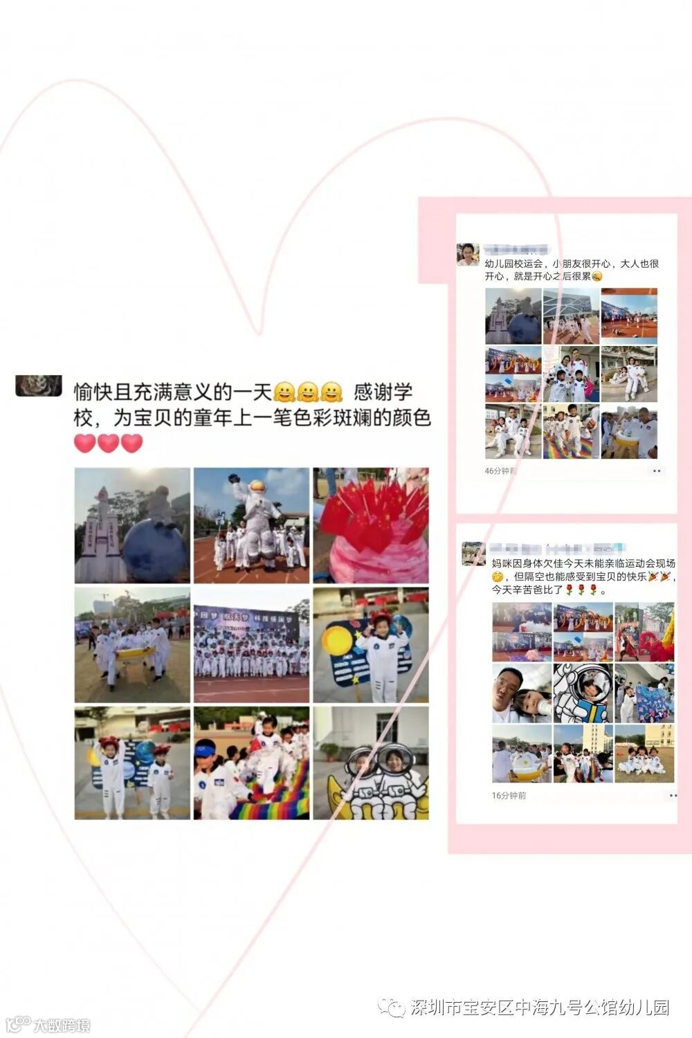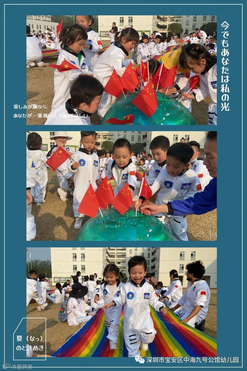 梦想是一颗种子,萌发于最初的探索心!再次感谢新安中学(集团)外国语学校场地提供,感谢N1A班级方仕名爸爸提供的专业摄影团队,感谢阳光花中海九号公馆幼儿园全体教职工及家长义工团队的辛勤付出,感谢所有爸爸妈妈对本次活动的积极参与及配合!让我们一起期待下一次的精彩活动吧!