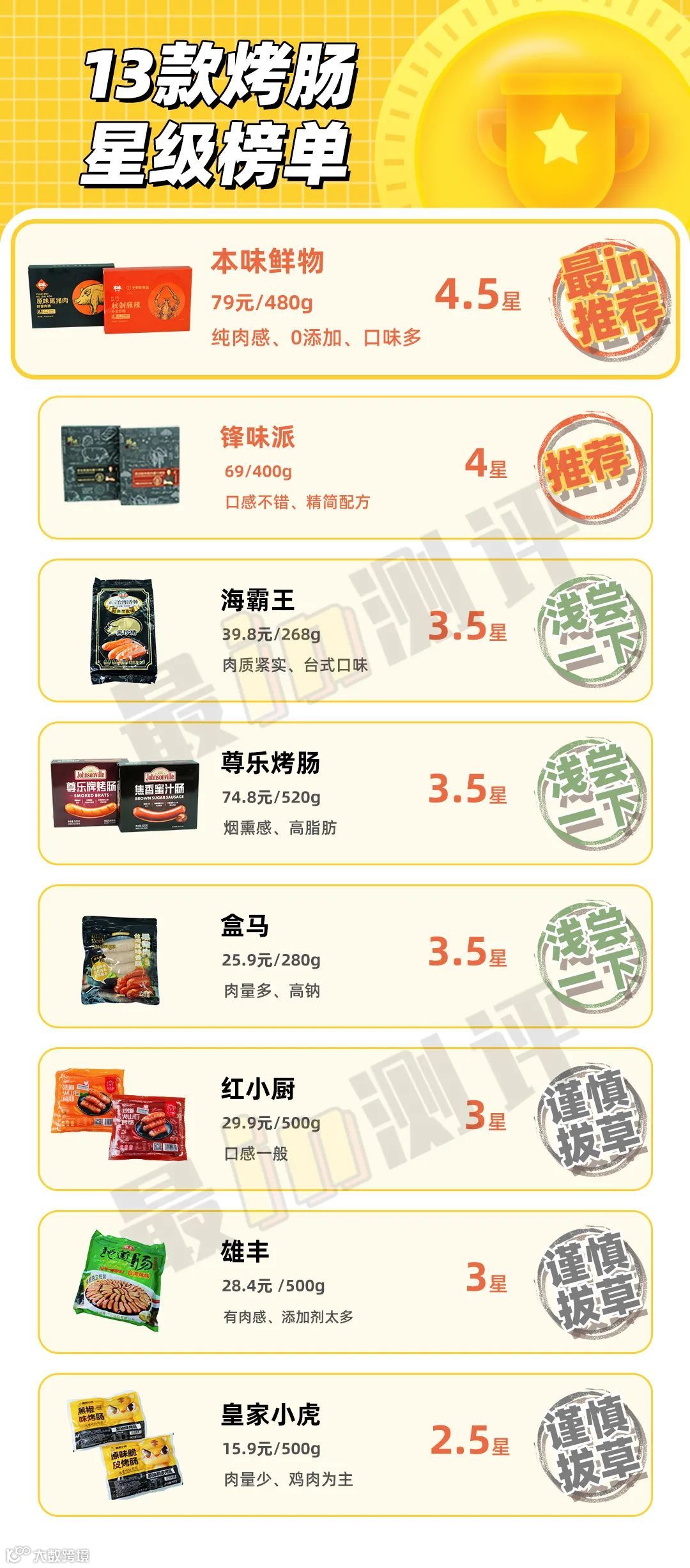 烤肠的灵魂在于肉汁四溢。我们重点考察含肉量、用料和口感三个核心维度。