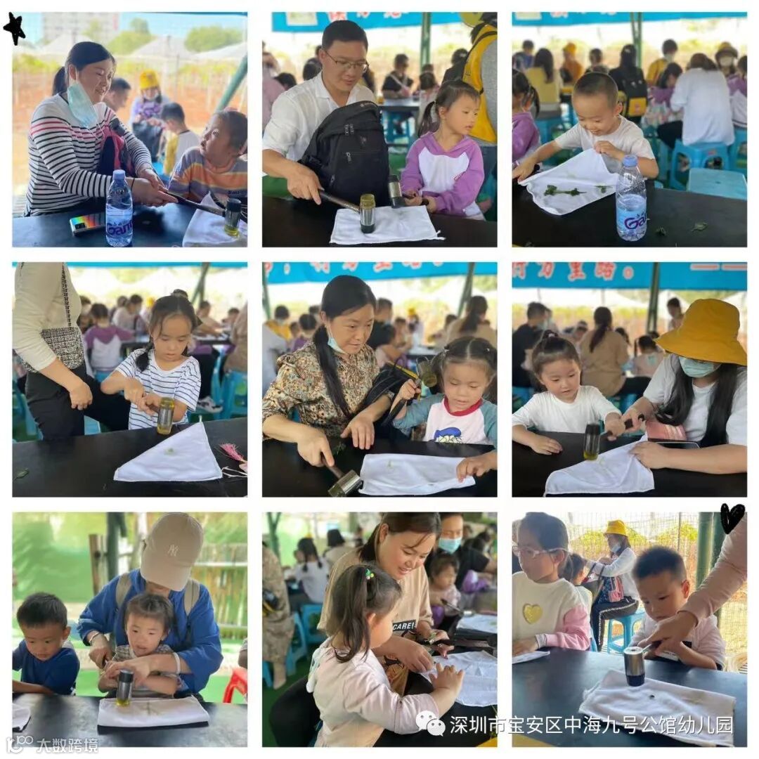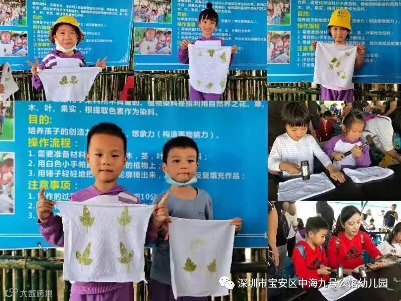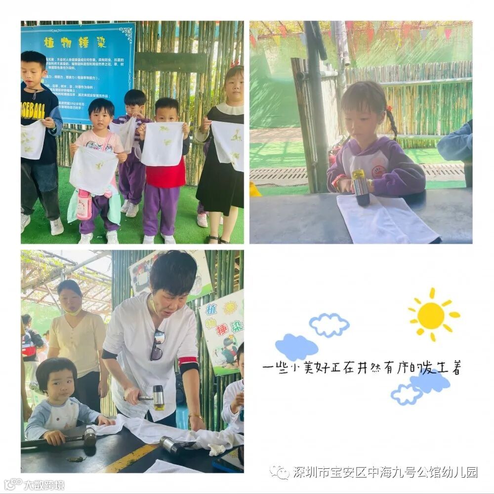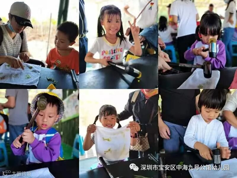 植物捶染是一种简单但神奇的手染艺术,孩子们活跃起艺术细胞,“锤炼”出一份漂亮的艺术作品。