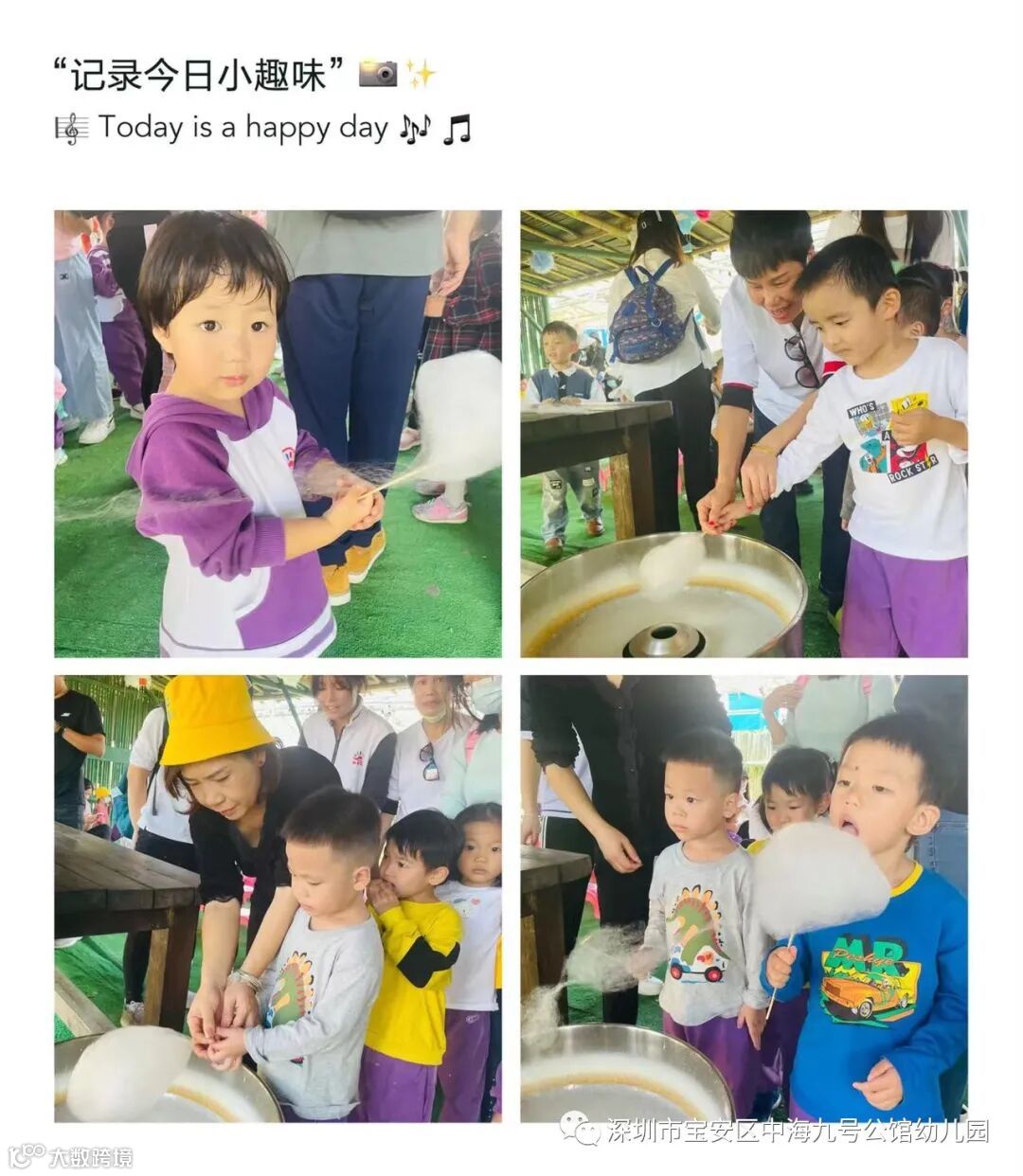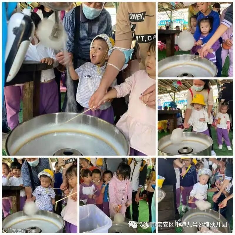 开始制作棉花糖喽!听完阿姨的详细讲解,孩子们亲自动手制作香甜可口的棉花糖。