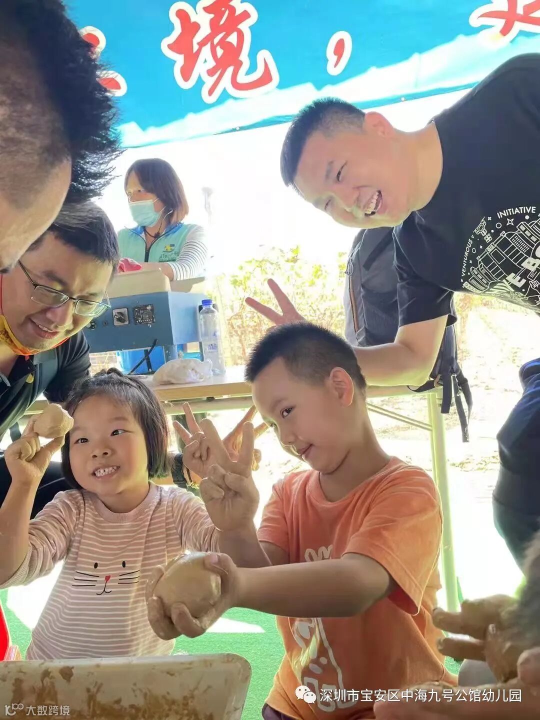 小朋友轮流扮演农民,家长们扮演地鼠,现场欢笑声一片。