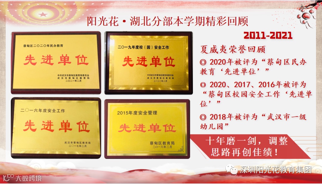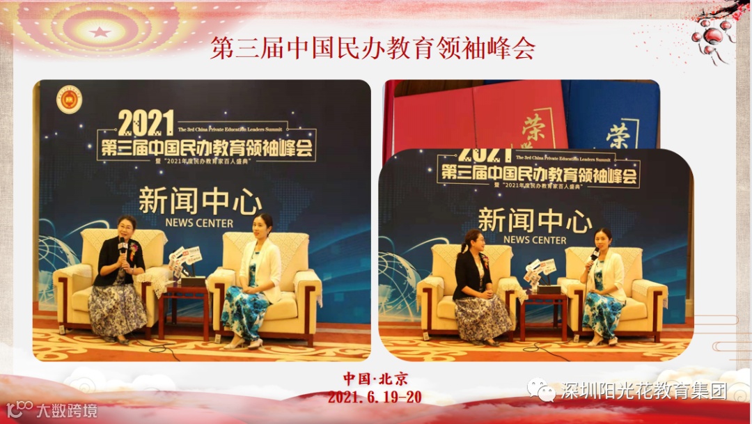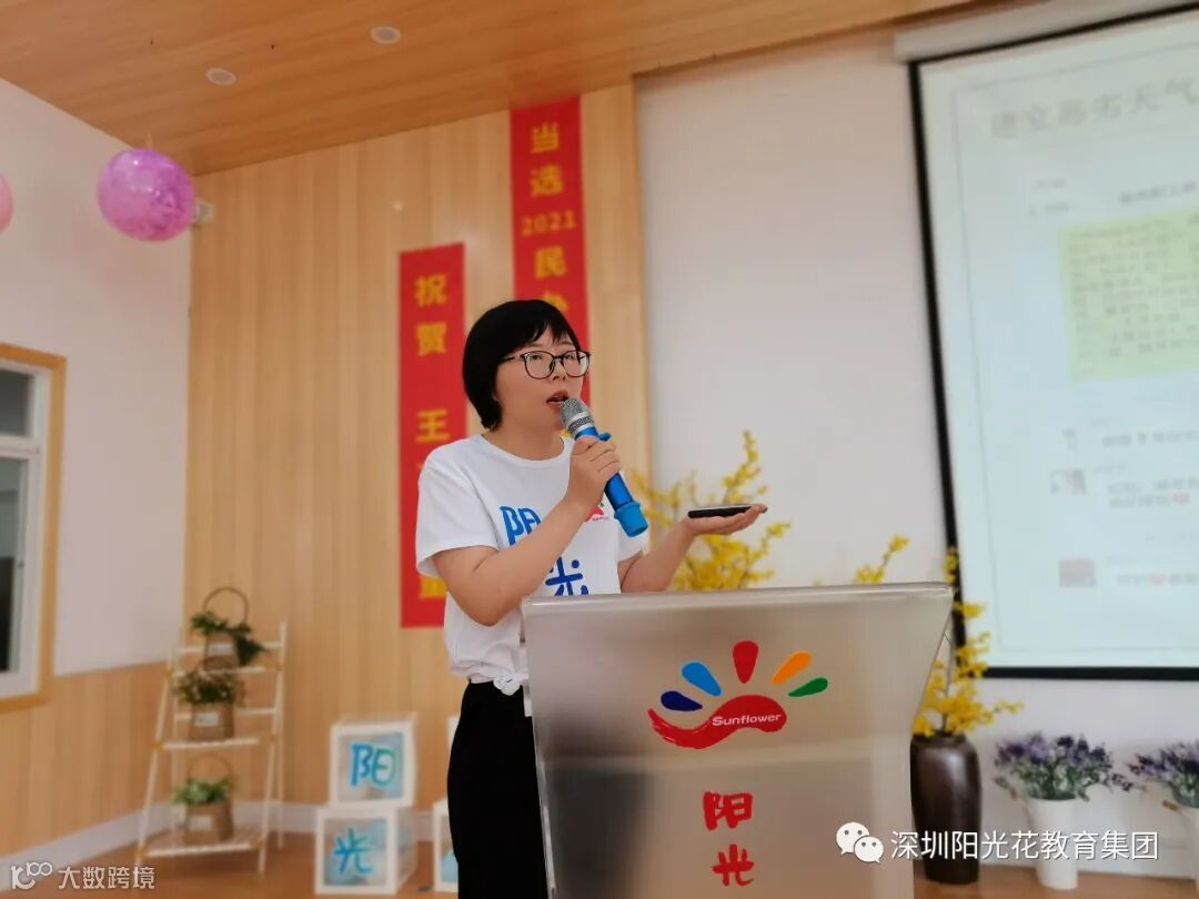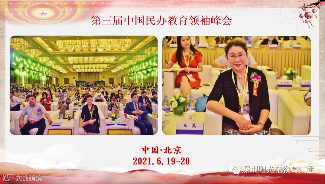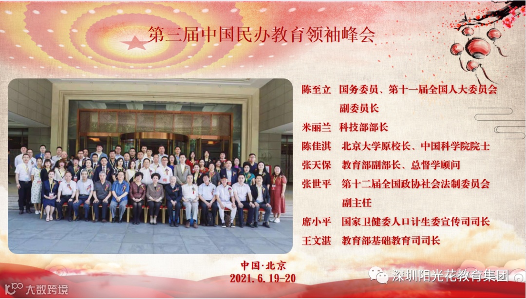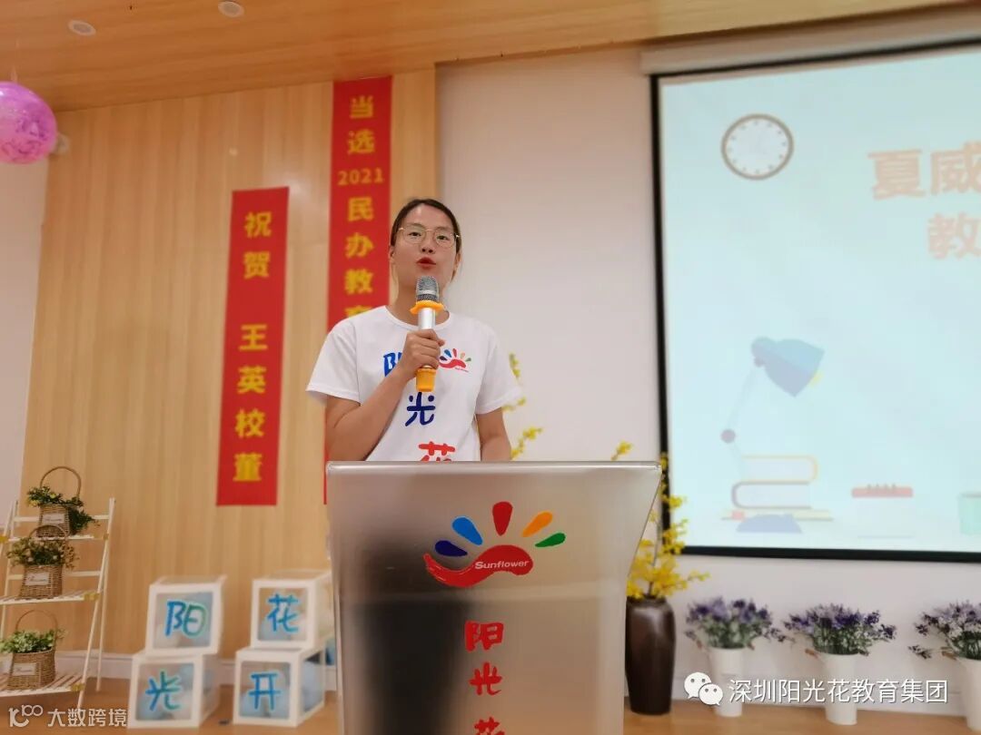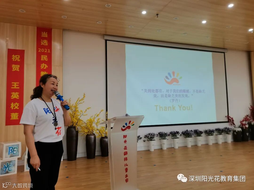 振奋人心和鼓舞士气的表彰活动结束后,让我们全体阳光花人以激动的心情和炙热的声音,再次祝贺王英校董当选2021民办教育领军人物、祝贺深圳阳光花教育集团荣获2021年民办教育行业影响力品牌;2021为阳光花王英校董点赞、2021为深圳阳光花教育集团点赞;坚守初心、忠于使命;砥砺奋进,面向未来,阳光花用爱与责任,续写幼教新篇章。