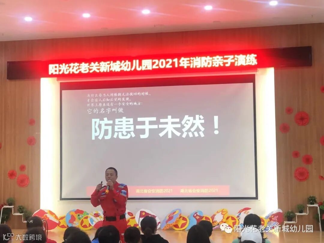 为提高师幼及家长的自我防范自救能力,增强安全防范意识,2021年10月18日,武汉市汉阳区阳光花老关新城幼儿园特邀会安消防中心专职教官黄教官来园开展“大手拉小手 消防安全记心中”消防安全知识讲座及模拟“逃生屋”亲子演练活动。