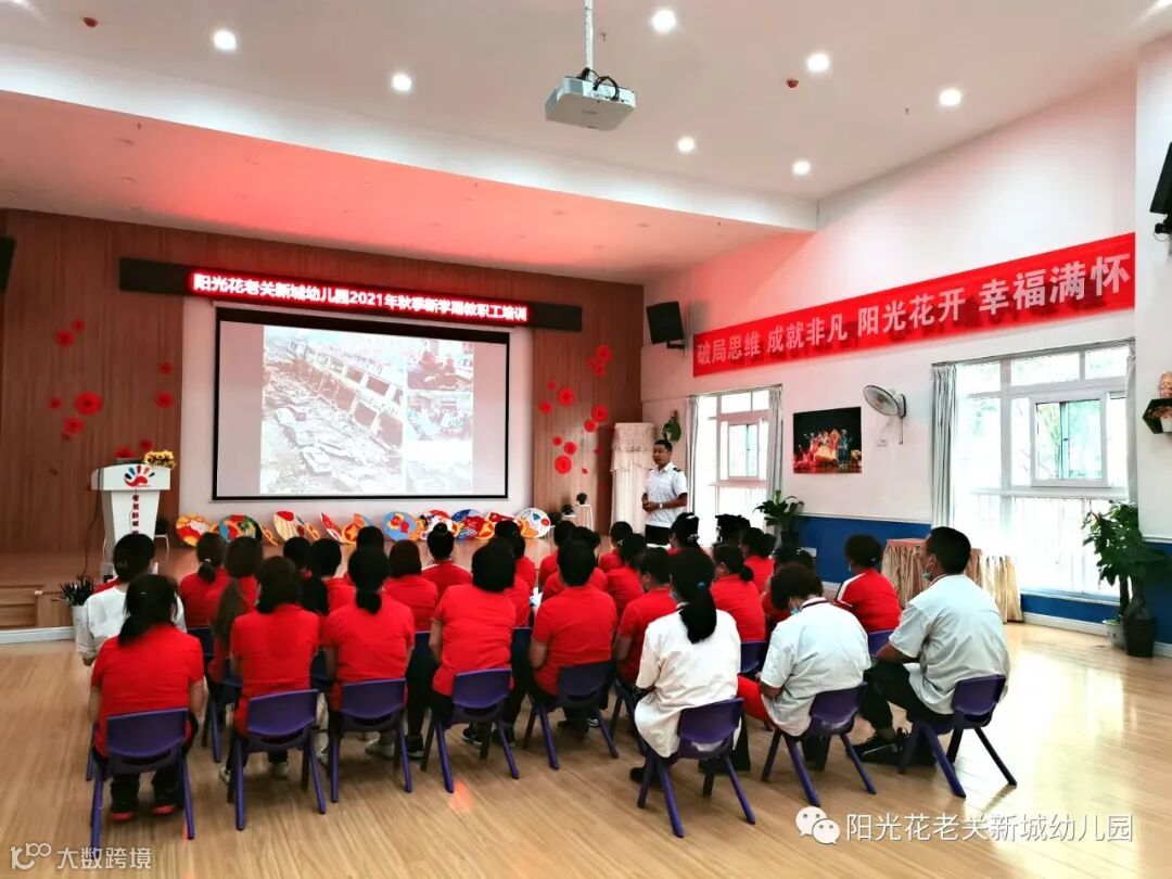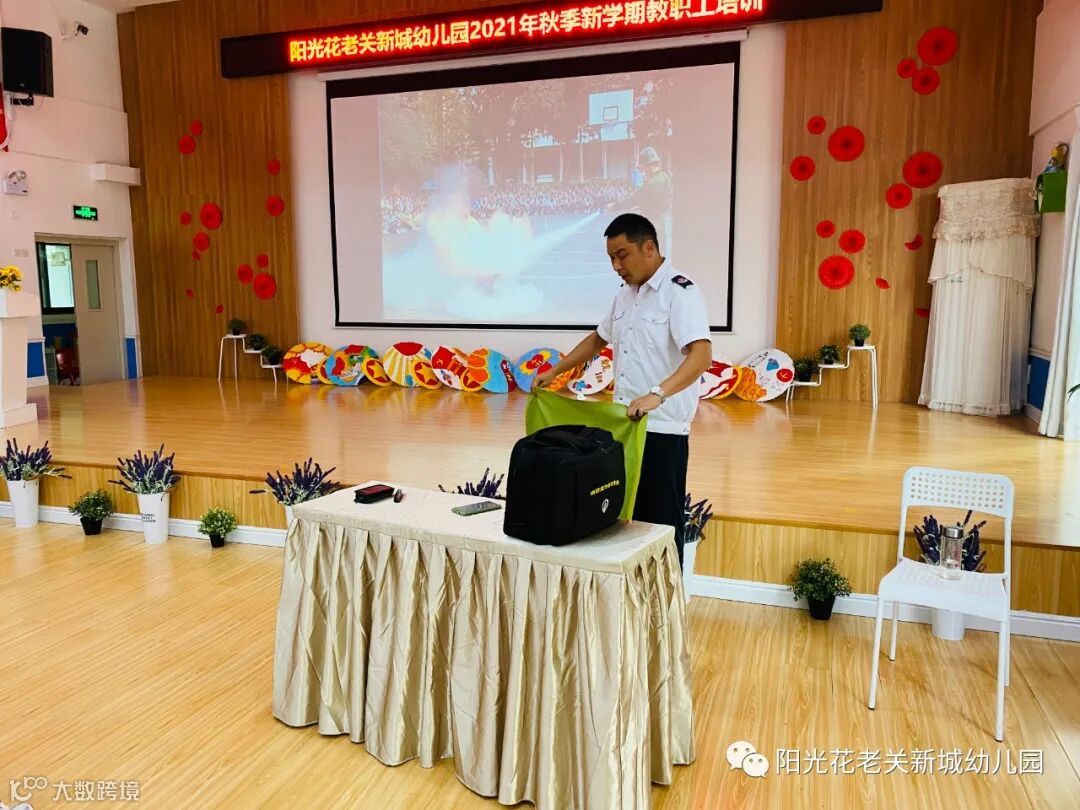 为进一步增强全园教职工消防安全意识,提高防范火灾、扑救初起火灾和疏散逃生能力,预防和减少各类火灾事故的发生。武汉市汉阳区阳光花老关新城幼儿园于2021年8月28日邀请全民防火中心刘政教官,为全体教职工作消防安全知识培训。