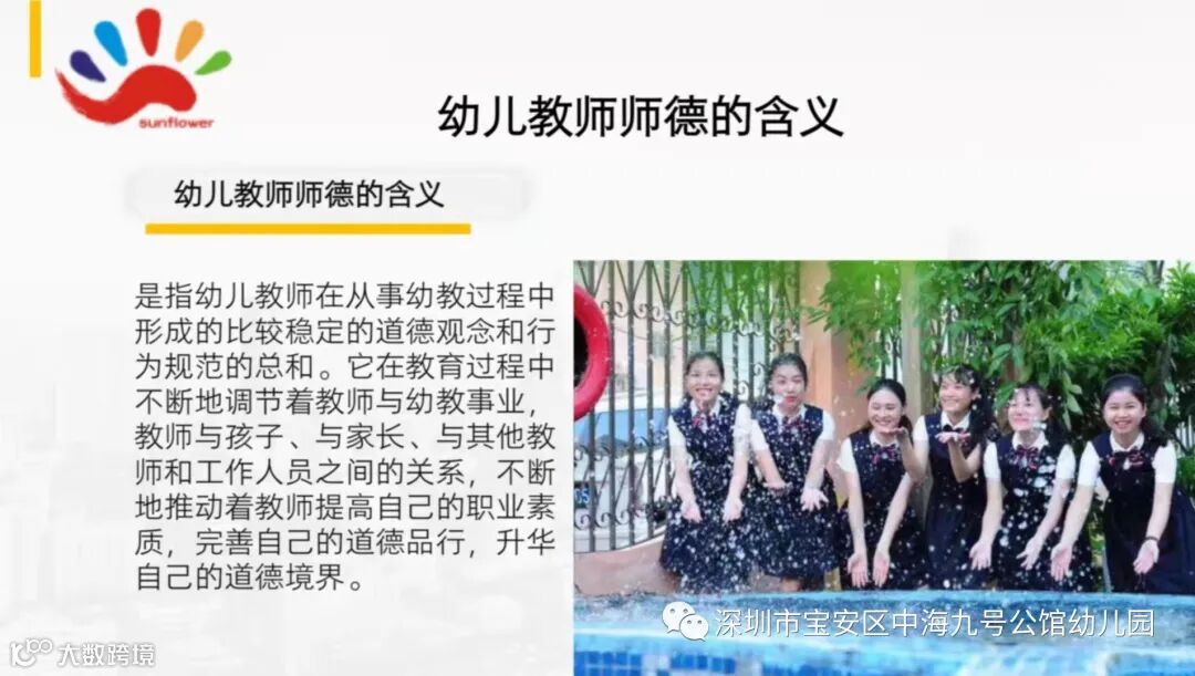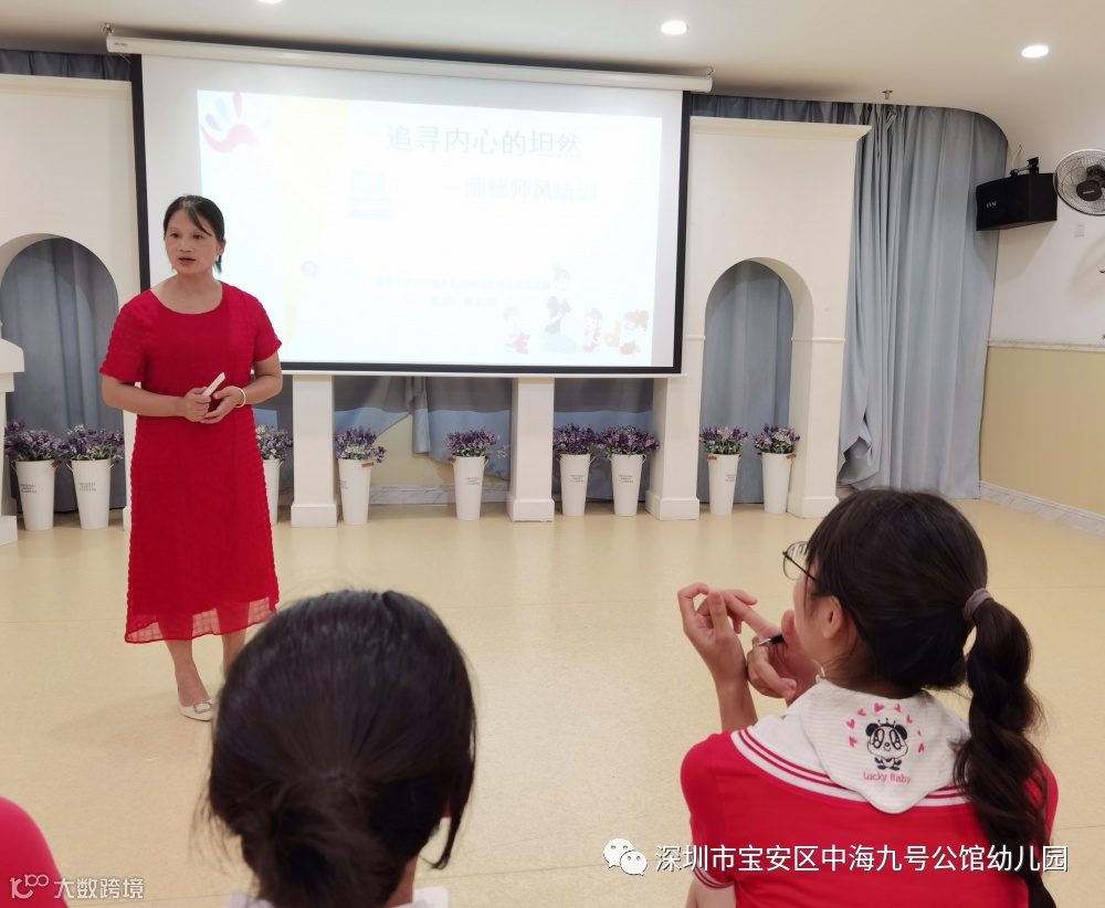 “师德为先”是《幼儿园教师专业标准》对幼教从业者提出的要求,也是幼儿园教师队伍建设的重要组成部分。师德是一个教师的灵魂,是搞好教学的前提保证,是教师的立身之本。为进一步提升教师师德修养,2021年9月1日,在陈园长的带领下,中海九号公馆幼儿园全体教职员工进行了师德师风培训活动。