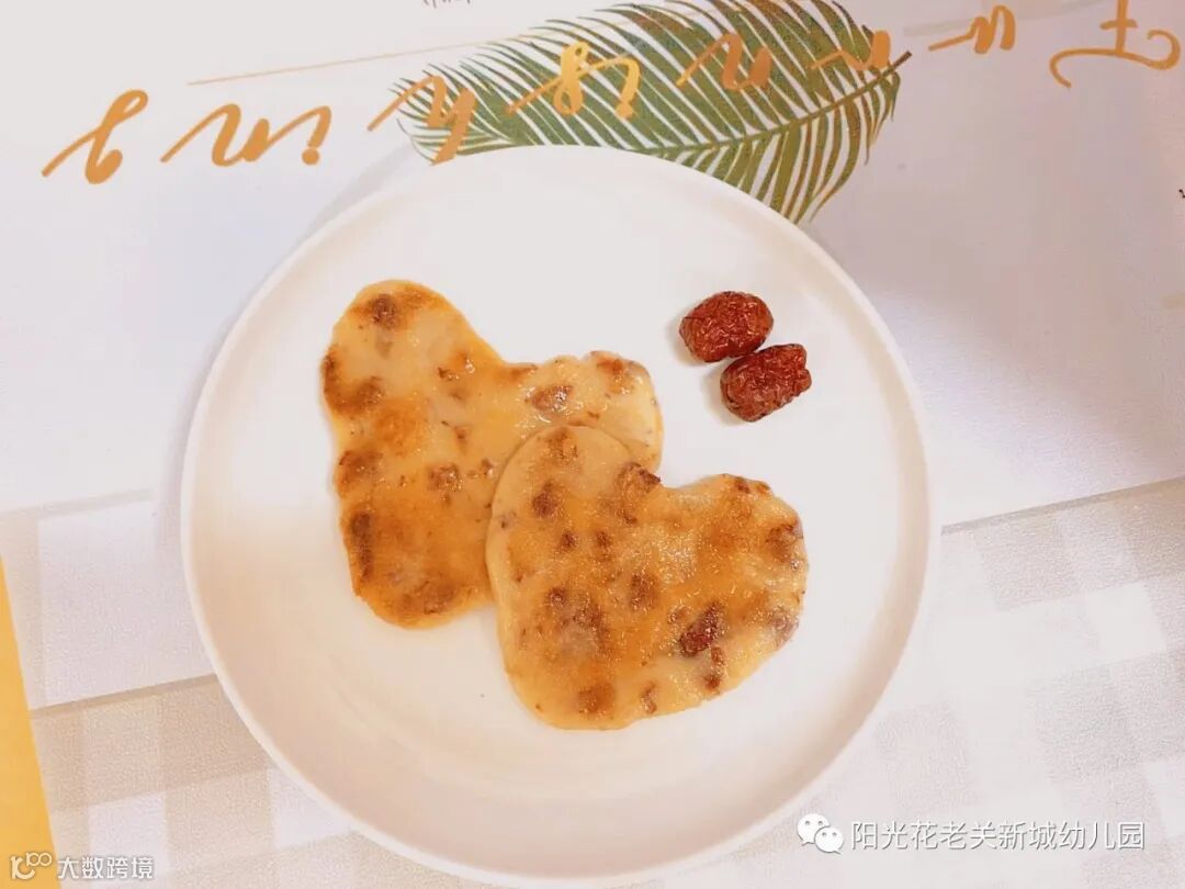 让我们一起来看看中二班小朋友带来的红枣糯米饼吧!