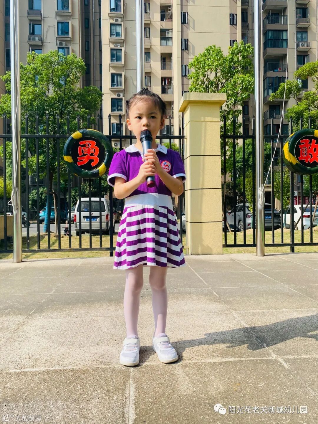 大班的姐姐代表小朋友们,在国旗下发言,新的学期,希望小朋友们能够学会更多的本领,同时,也欢迎弟弟妹妹们的加入。