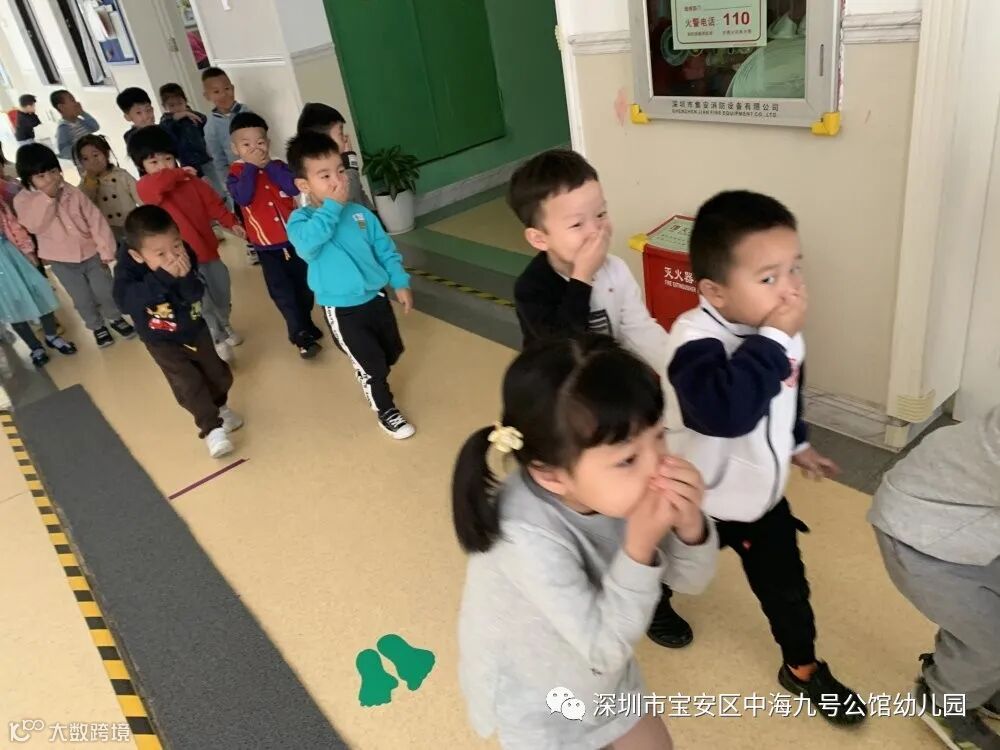 火灾预警拉响时,各班级老师迅速组织幼儿按照正确逃生方式撤离到空旷安全的地方。教会幼儿学会用毛巾捂住口鼻,并且猫腰前行,预防浓烟进入口鼻呼吸道。