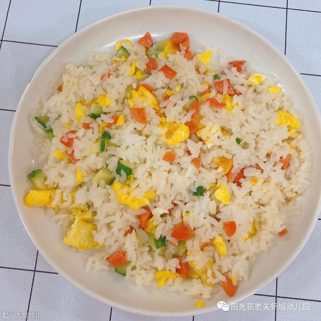 让我们看看,中三班的宝贝们带来一道美味的扬州炒饭,开起元气满满的一天。