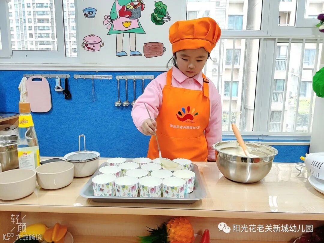 老关新城幼儿园本周生活体验馆开课啦!为了培养孩子们的动手能力,培养幼儿的烘焙兴趣,本周特开展了烘焙课——纸杯蛋糕。