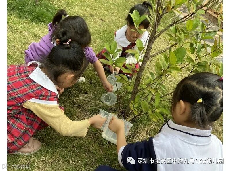 哇!大班的宝贝们还为大树“量身定制”了呢,我们认真地写下每一棵大树的名字并且仔细地测量和记录着树围。