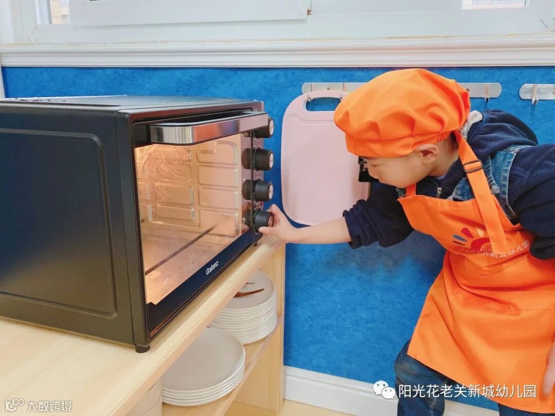 蛋挞放入烤箱,没一会儿就飘香四溢,小家伙们不由自主地感慨道:“哇!好香啊!”