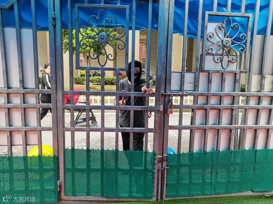 “歹徒”欲强行闯入幼儿园,危险一触即发,安保人员发现后立即按下“110一键报警器”,第一时间向公安机关报警。同时幼儿园安全领导小组成员向幼儿园园领导报告,并拉响警报。