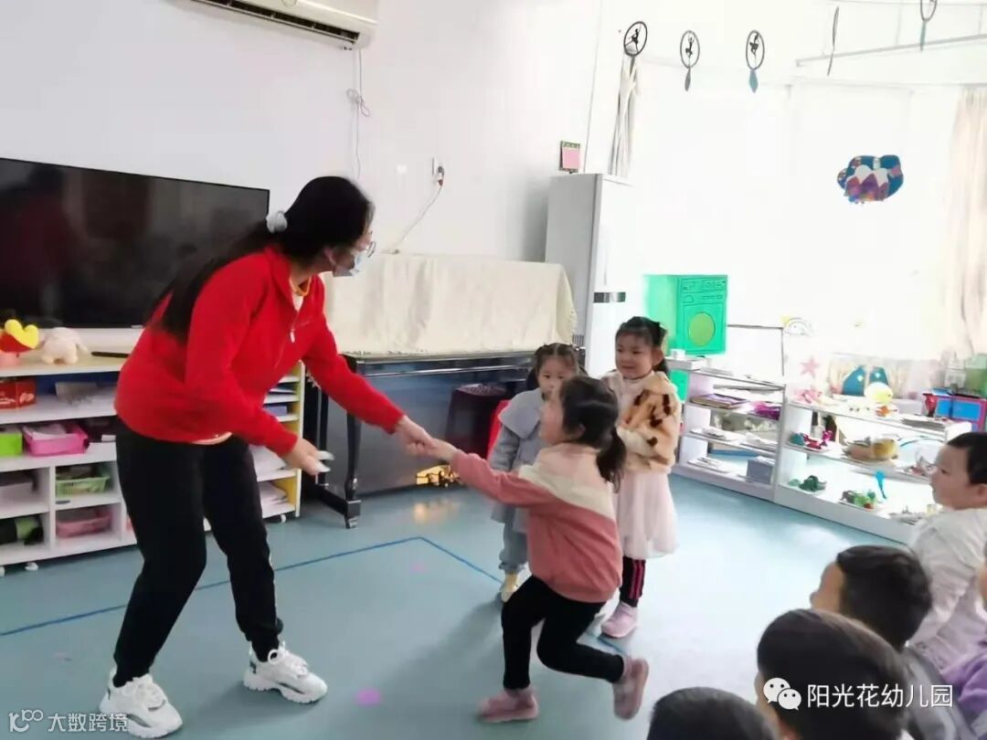 情景设计:教室进行教学活动,班级教师假装有事离开,出演家长假扮幼儿家长朋友。带幼儿走出教室。