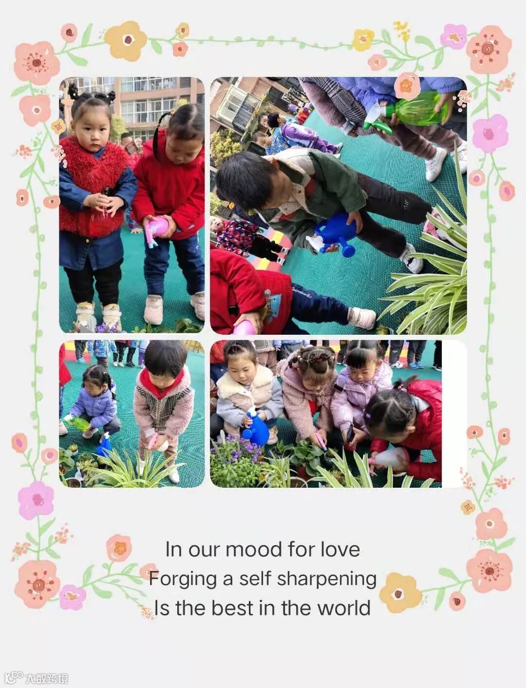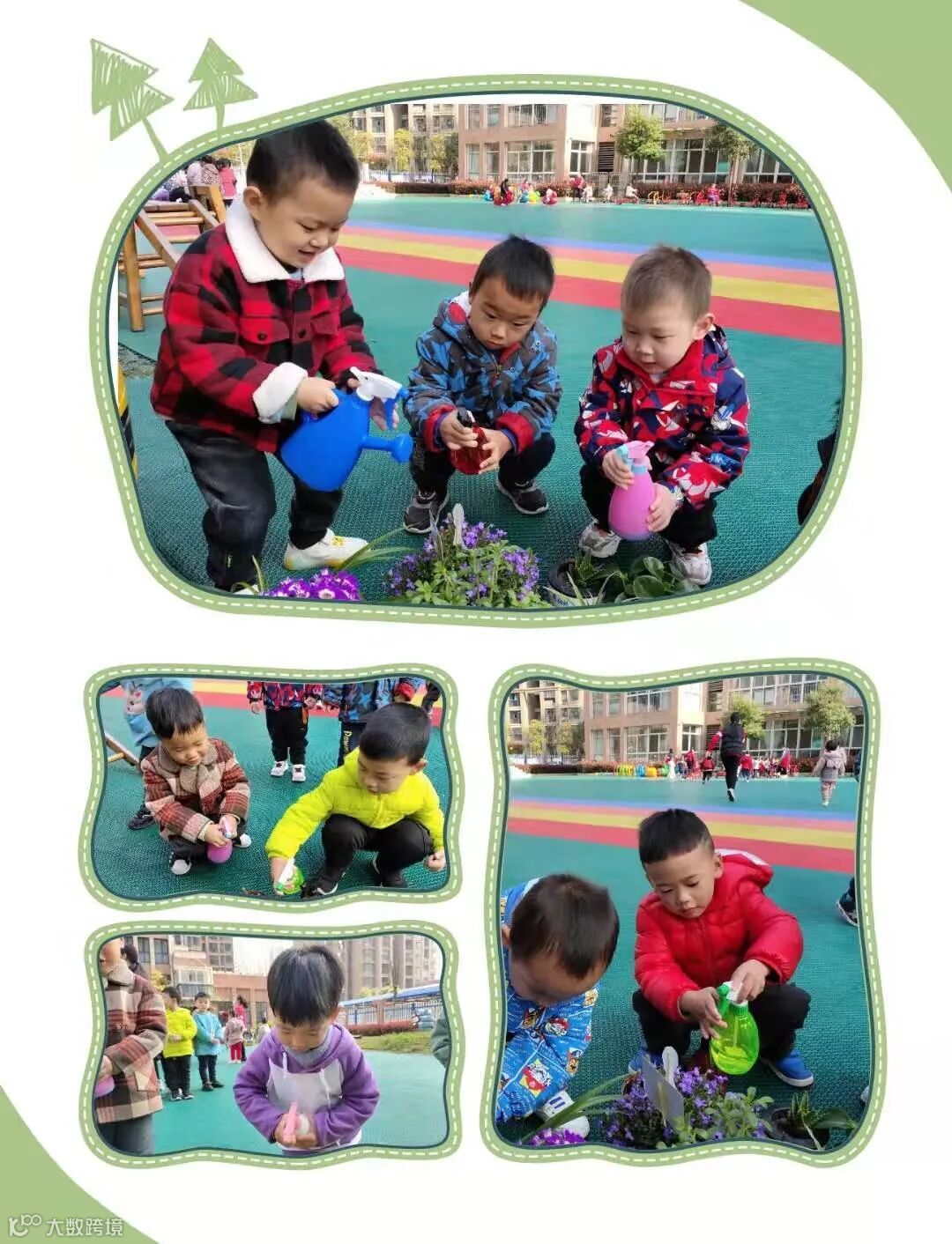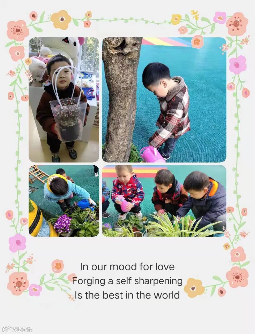 为了使孩子们能够积极的与环境“对话”,主动参与植树节的相关活动,亲身体验劳动的乐趣,感受美化环境的意义,激发幼儿热爱环境的情感,阳光花鲤跃龙门幼儿园开展了“相约春天,共植希望”的植树节专题活动。